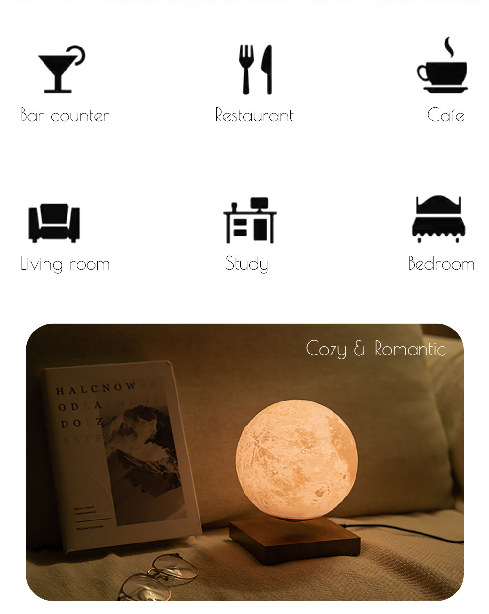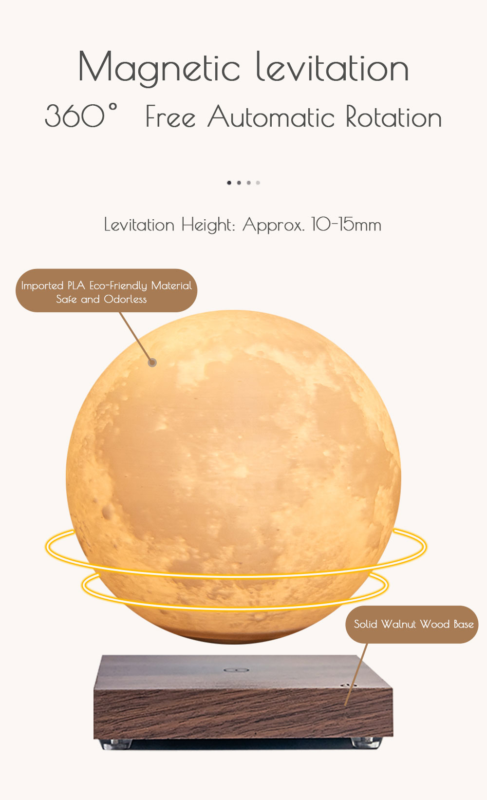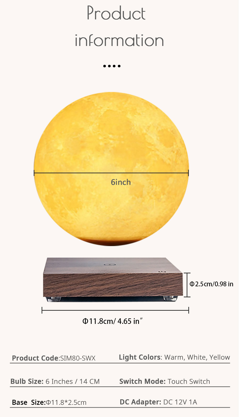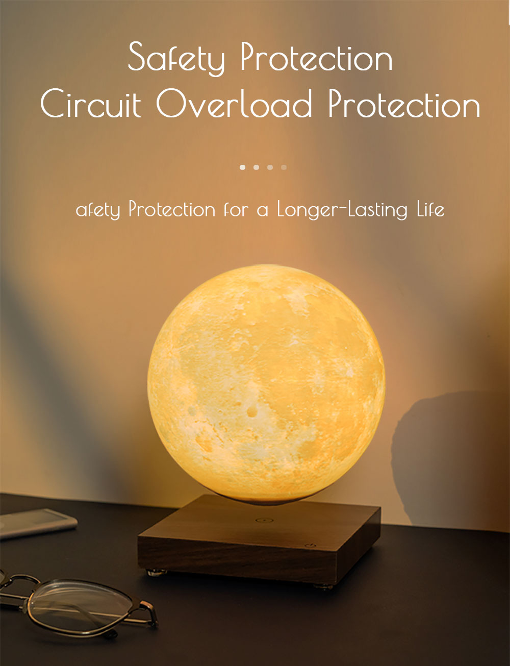 6-inch Floating moon lamp with square base