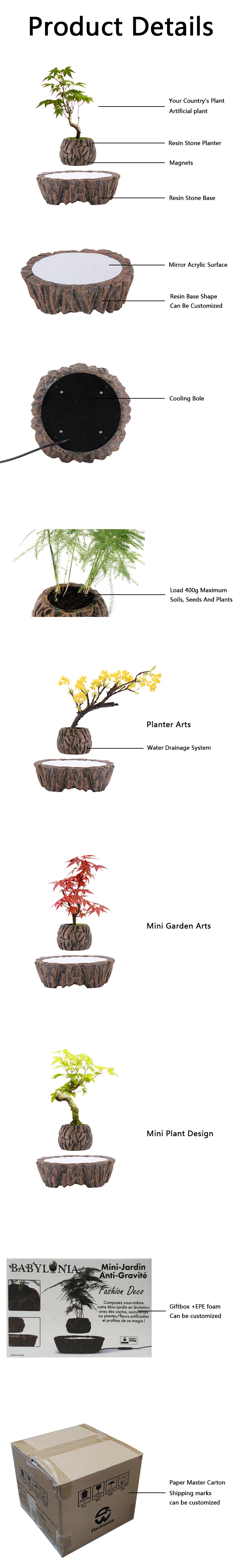 Flower Pots Manufacturers Garden Indoor Wholesale Cheap Resin Bonsai Magnetic Floating Levitating Flower Pots